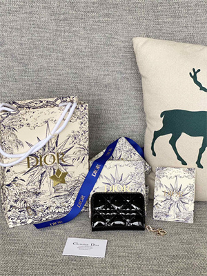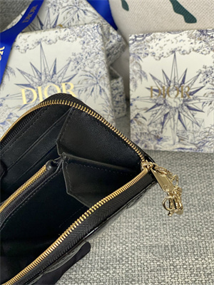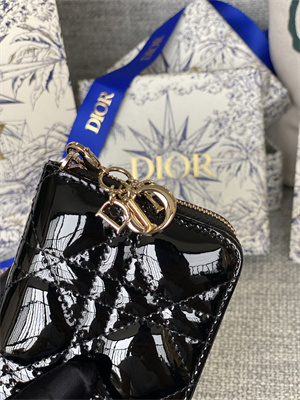CD Voyageur Small Coin Purse Supple Cannage Patent Calfskin Black S0985