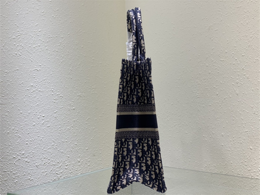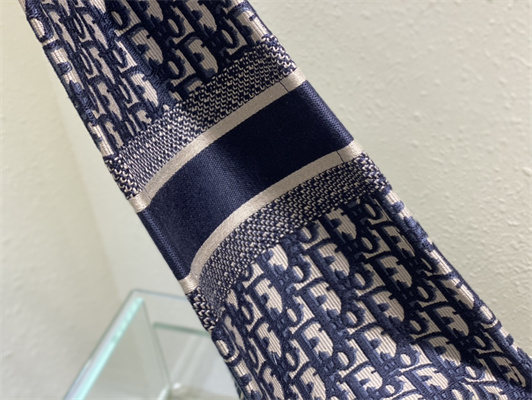 CD Large Book Tote Ecru and Blue Oblique Embroidery