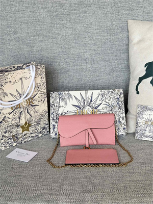 CD Long Saddle Wallet With Chain Grained Calfskin PinkCD Long Saddle Wallet With Chain Grained Calfskin Pink