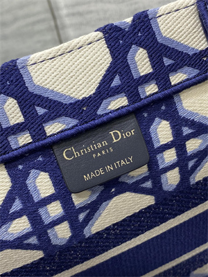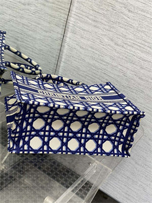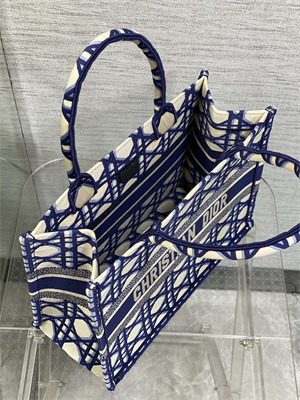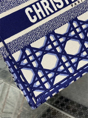CD Medium Book Tote Beige and Blue Macrocannage EmbroideryCD Medium Book Tote Beige and Blue Macrocannage Embroidery