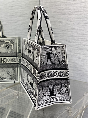 CD Medium Book Tote Butterfly Bandana Embroidery Black and White