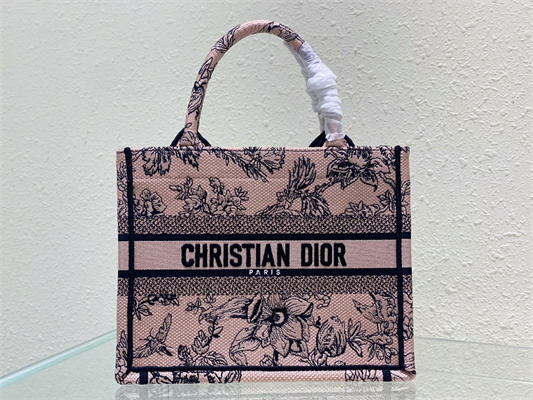CD Small Book Tote Jardin Botanique Embroidery PinkCD Small Book Tote Jardin Botanique Embroidery Pink