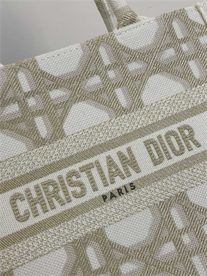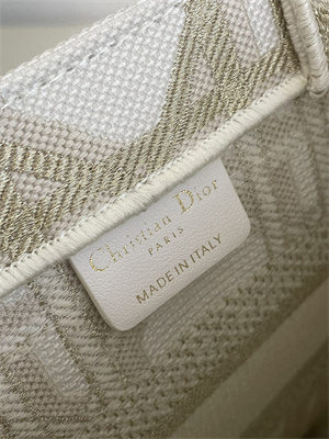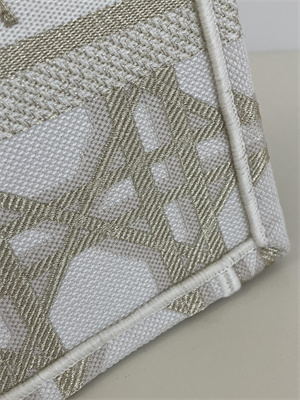 CD Small Book Tote White and Gold Tone Macrocannage Embroidery