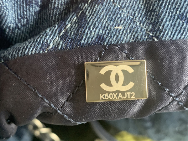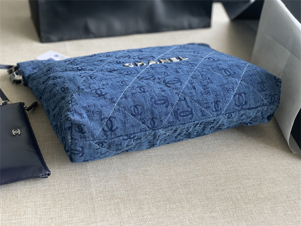 Cha.nel 22 Medium Handbag Denim Silver Tone Metal AS3261