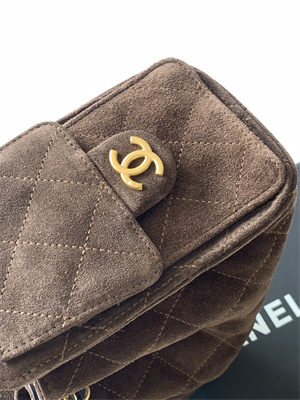 Chanel 25 Mini Handbag Suede Gold Tone Metal Coffee AS5631Chanel 25 Mini Handbag Suede Gold Tone Metal Coffee AS5631
