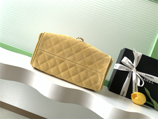 Chanel 25 Small Handbag Suede Gold Tone Metal Yellow AS5293Chanel 25 Small Handbag Suede Gold Tone Metal Yellow AS5293