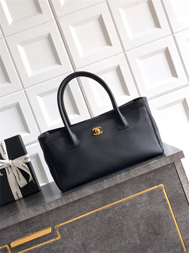 Chanel Excecutive Cerf Tote Bag Grained Calfskin &Gold-Tone Metal Black Color
