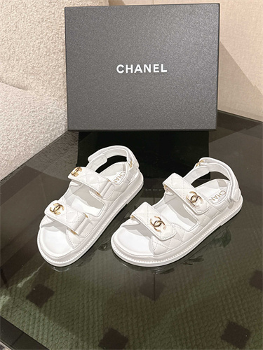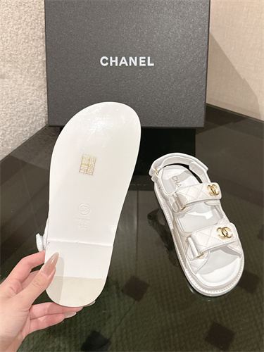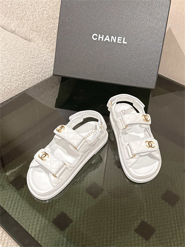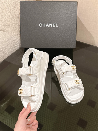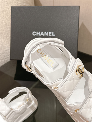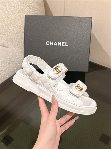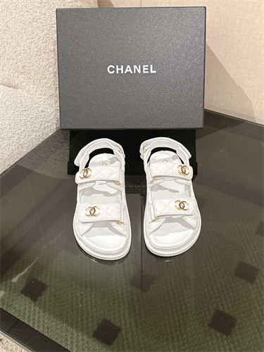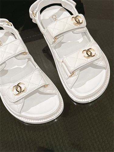 Chanel Women’s Dad Beach Sandals Calfskin White 39687