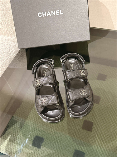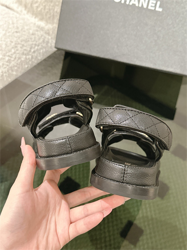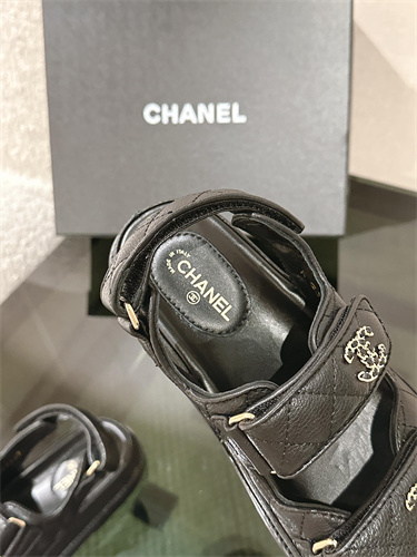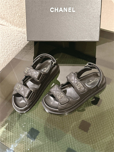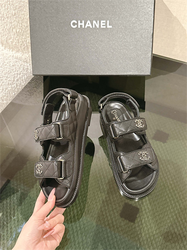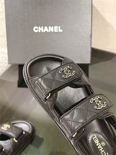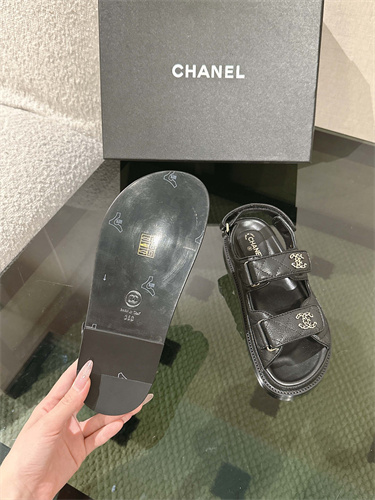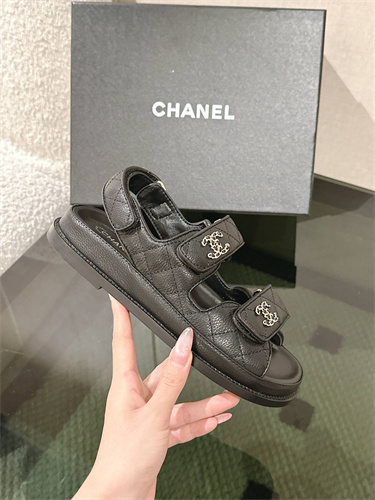 Chanel Women’s Dad Beach Sandals Grained Calfskin Black 39705