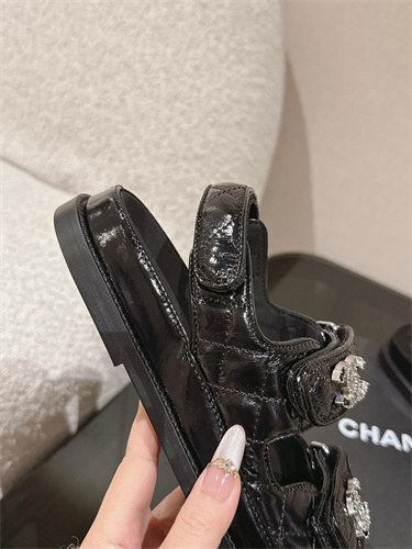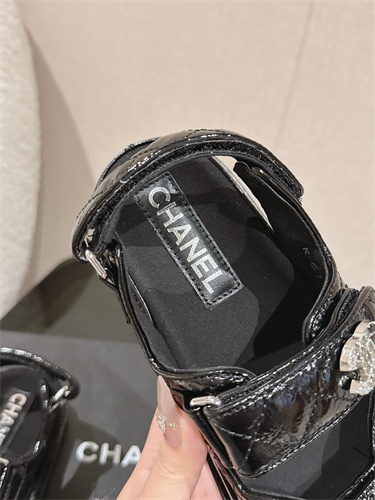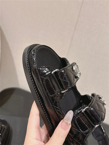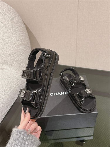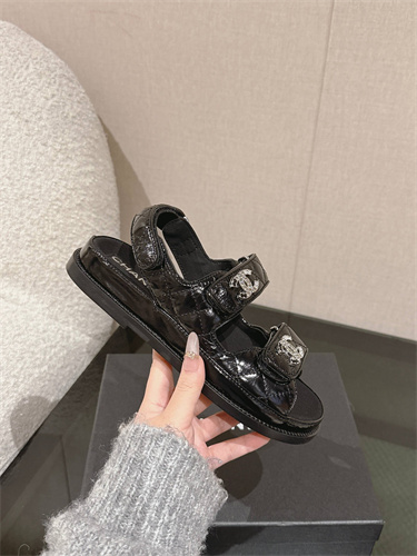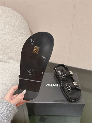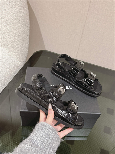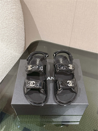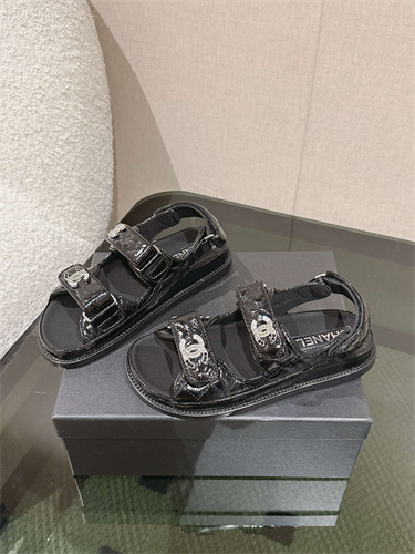 Chanel Women’s Dad Beach Sandals Shinny Calfskin Black 39692