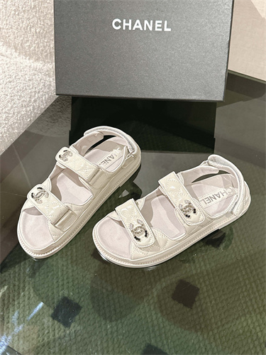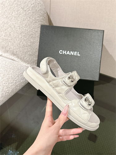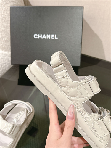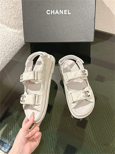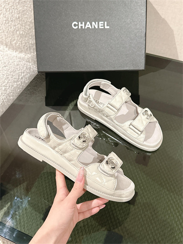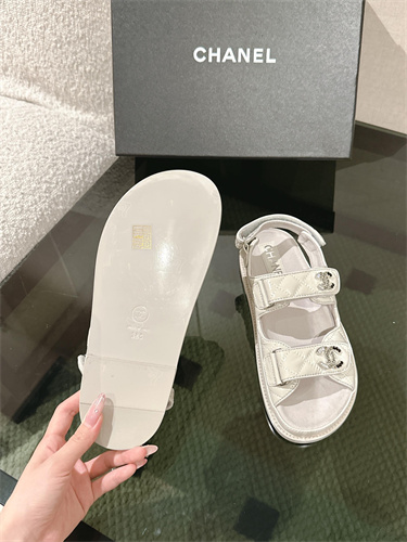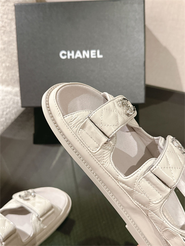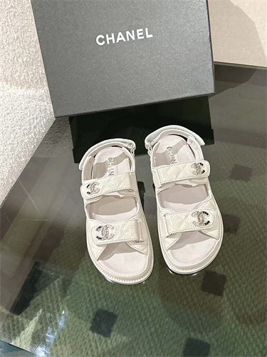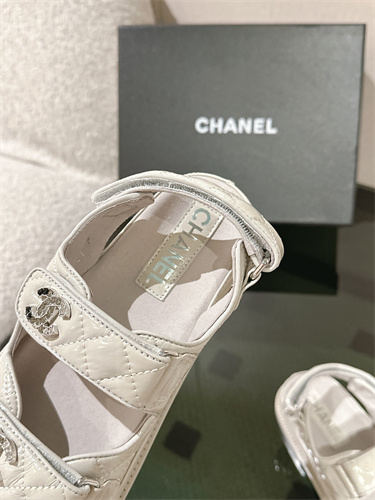 Chanel Women’s Dad Beach Sandals Shinny Calfskin White 39694