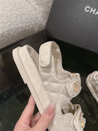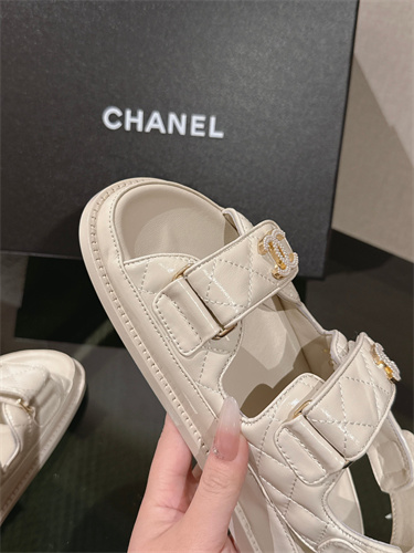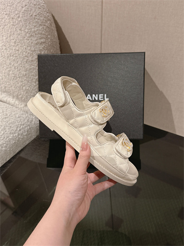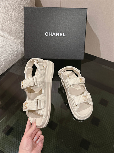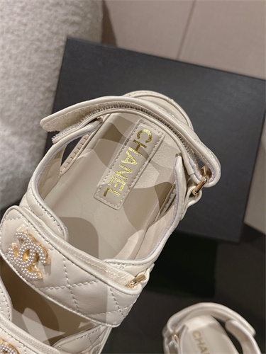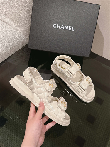 Chanel Women’s Dad Beach Sandals Shinny Calfskin White 39703