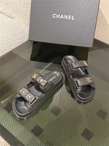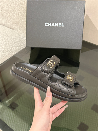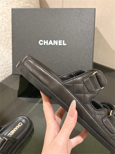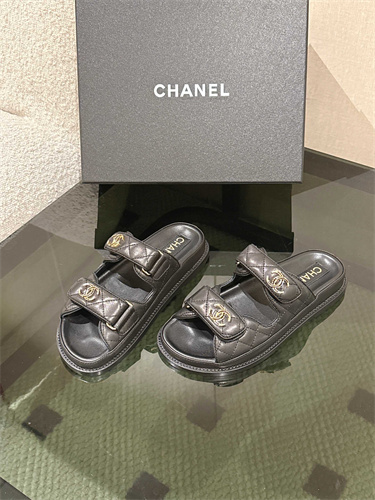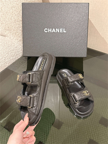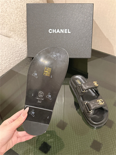 Chanel Women’s Dad Beach Slides Calfskin Black 39690