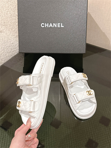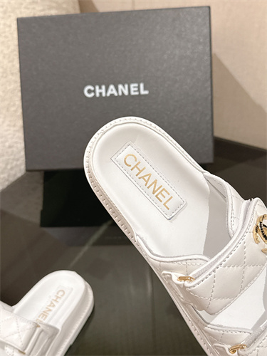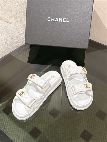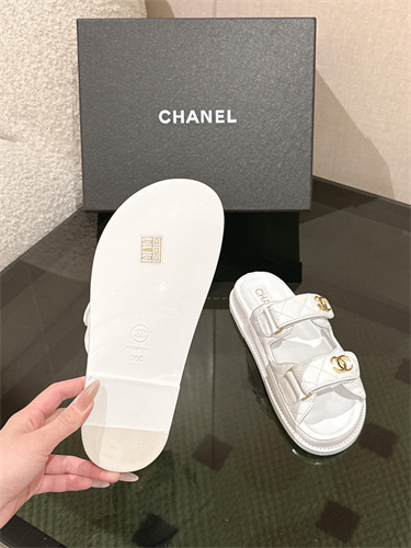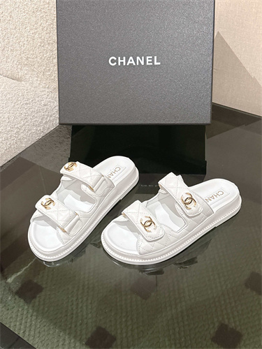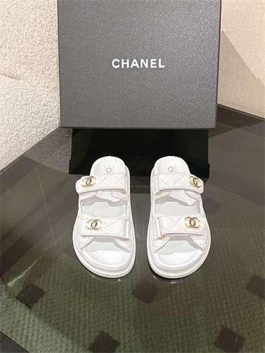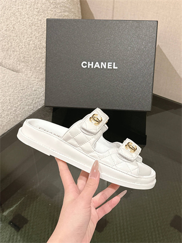 Chanel Women’s Dad Beach Slides Calfskin White 39689