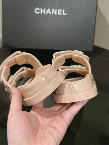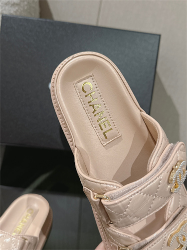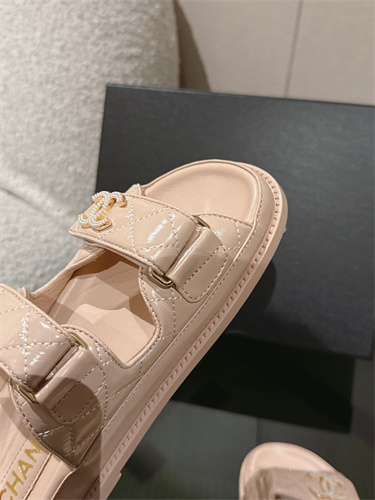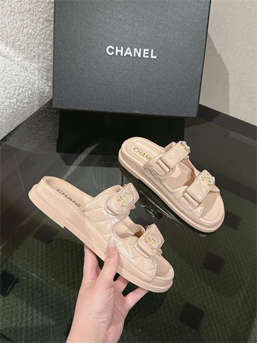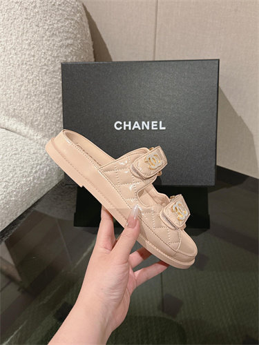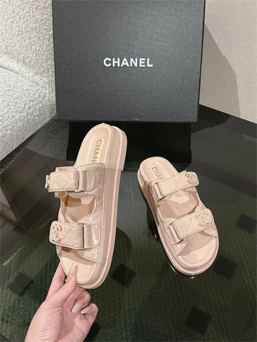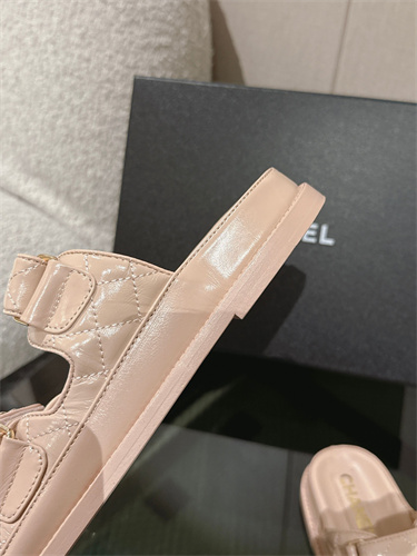 Chanel Women’s Dad Beach Slides Shinny Calfskin Nude Beige 39700