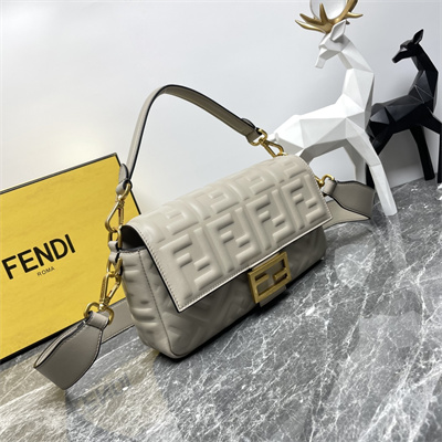 Fen.di BAGUETTE Bag Grey Nappa Leather With FF MotifFen.di BAGUETTE Bag Grey Nappa Leather With FF Motif