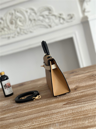 Hermes Kelly Mini II Bag Epsom Leather Biscuit/Craie/Black HSHermes Kelly Mini II Bag Epsom Leather Biscuit/Craie/Black HS