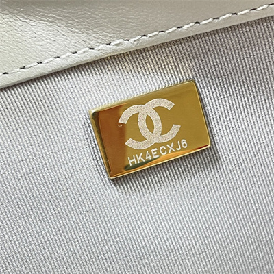 Cha.nel 19 Shopping Bag Lambskin Silver Tone Metal Grey AS3660