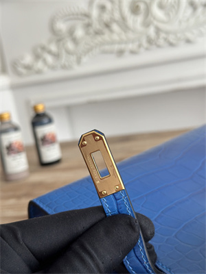 Kelly Pochette Bag Embossed Crocodile Gold Tone Hardware Blue Hydra HS