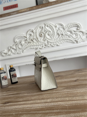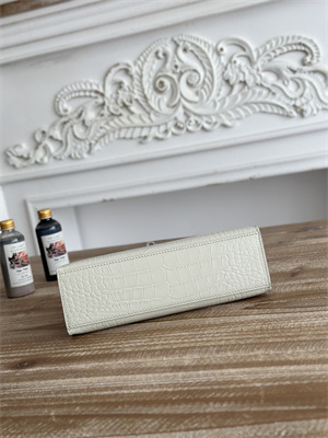 Kelly Pochette Bag Embossed Crocodile Silver Tone Hardware Craie HS
