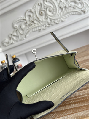 Kelly Pochette Bag Embossed Crocodile Silver Tone Hardware Vanille HS