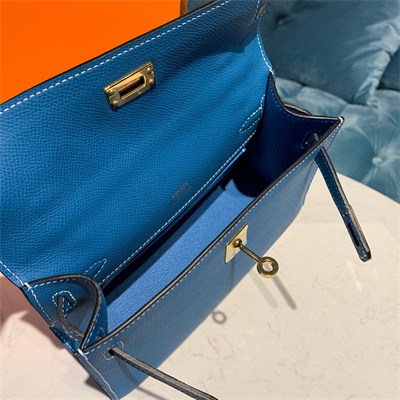 Kelly Pochette Bag Epsom Leather Gold/Silver hardware In Bley Jean Color HS