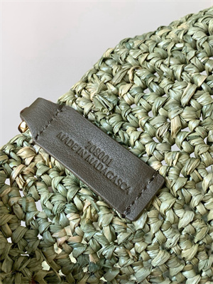 Loewe Slit Mini Tote Bag In Raffia &Calfskin GreenLoewe Slit Mini Tote Bag In Raffia &Calfskin Green