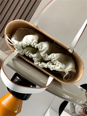 Loewe Small Square basket in Raffia&Calfskin Nature/WhiteLoewe Small Square basket in Raffia&Calfskin Nature/White