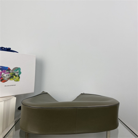 Prada Large leather shoulder bag with topstitching Green 1BC181
