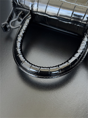 Women's Hourglass XS Handbag Crocodile Embossed In Black-BlackWomen’s Hourglass XS Handbag Crocodile Embossed In Black-Black