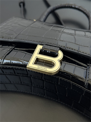 Women's Hourglass XS Handbag Crocodile Embossed In Black-GoldWomen’s Hourglass XS Handbag Crocodile Embossed In Black-Gold