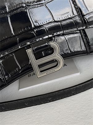 Women's Hourglass XS Handbag Crocodile Embossed In Black-SilverWomen’s Hourglass XS Handbag Crocodile Embossed In Black-Silver